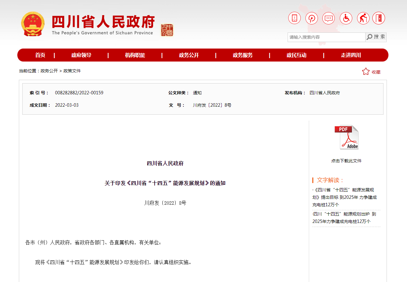 據了解,四川省可再生能源資源稟賦得天獨厚,分布集中、特色鮮明。水能、風能、太陽能、生物質能、地熱能等資源品種齊全,開發價值較高。