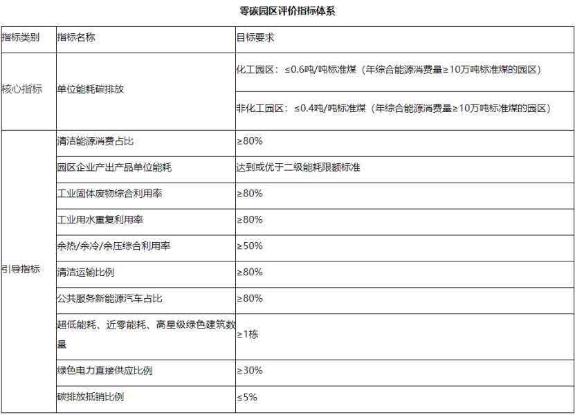 核心指標:零碳園區(qū)建設必須達到的目標,是園區(qū)驗收評估的首要條件。達不到核心指標要求的園區(qū),原則上不得申請驗收。