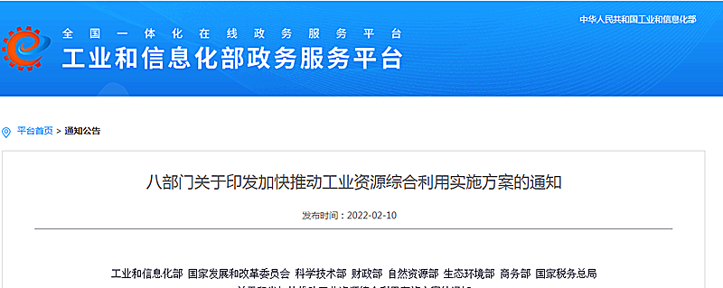地大熱能地?zé)?多能互補(bǔ)網(wǎng)訊:2月10日,工業(yè)和信息化部、國(guó)家發(fā)展和改革委員會(huì)、科學(xué)技術(shù)部、財(cái)政部、自然資源部、生態(tài)環(huán)境部、商務(wù)部、國(guó)家稅務(wù)總局等八部門(mén)聯(lián)合印發(fā)了《關(guān)于印發(fā)加快推動(dòng)工業(yè)資源綜合利用實(shí)施方案的通知》(下文簡(jiǎn)稱《通知》)。
