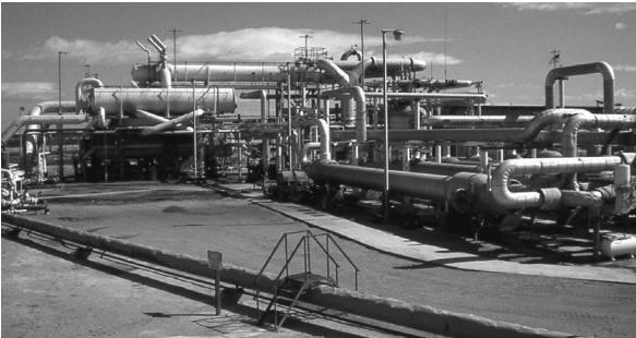 起初的電站使用的就是普通的雙循環(huán)地?zé)岚l(fā)電流程的機(jī)組。在優(yōu)化了1979年開始使用的發(fā)電機(jī)組以后,修整后的地?zé)犭娬臼且粋€(gè)完全不同的發(fā)電機(jī)組。以前的主渦輪機(jī)、真回流熱電轉(zhuǎn)換器、和交互蘭金循環(huán)都被還掉了。取而代之的是,一個(gè)簡單的,非提取異丁烷渦輪,和九個(gè)更大的鹵水熱電交換機(jī)。在熱電交換機(jī)的管道所在的一邊是鹵水,在殼側(cè)是碳水化合物。驅(qū)動(dòng)沸騰給水渦輪的異丁烷來自于一個(gè)單獨(dú)的過熱器的側(cè)流。發(fā)電系統(tǒng)上安裝了一個(gè)降壓閥,來降低異丁烷的壓力以適應(yīng)BFPT的注入壓力。換熱器沒有更換,但是現(xiàn)在只是作為一個(gè)異丁烷循環(huán)的預(yù)熱器。丙烷循環(huán)現(xiàn)在也已經(jīng)獨(dú)立于異丁烷循環(huán)。