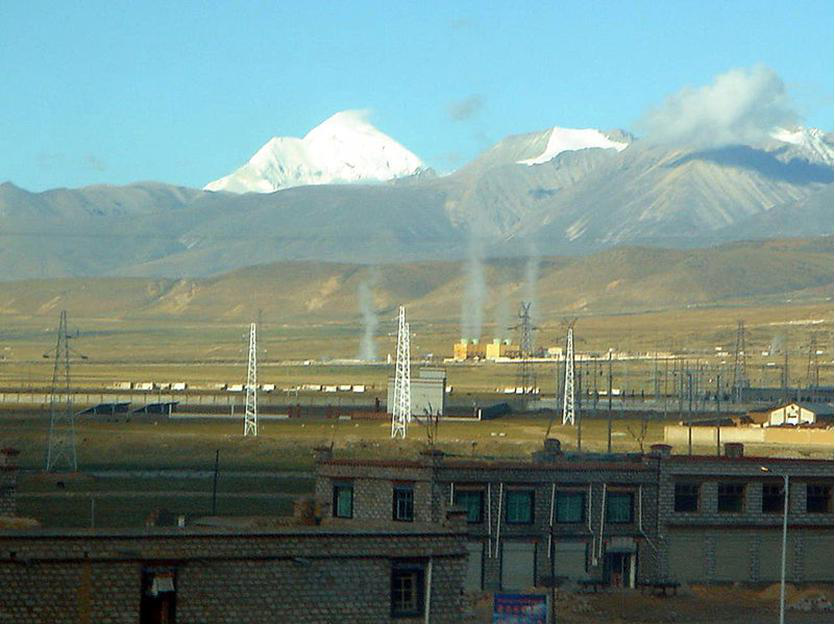 羊八井,即羊八井鎮,位于西藏拉薩市西北91.8公里的當雄縣境內。熱田地勢平坦,海拔4300米,南北兩側的山峰均在海拔5500~6000米以上,山峰發育著現代冰川,藏布曲河流經熱田,河水溫度年平均為5℃,當地年平均氣溫2.5℃,大氣壓力年平均為0.06兆。附近一帶經濟以牧業為主,兼有少量農業。青藏、中尼兩條公路干線分別從熱田的東部和北部通過,交通尚為方便。