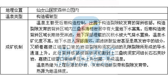 川東仙女山溫泉風景仙女山溫泉地處達州市仙女山腳的銅缽河畔、仙女山國家森林公園,距平灘場鎮(zhèn)1公里。據(jù)勘測,該溫泉水質優(yōu)良,水溫適宜,流量大并且穩(wěn)定,富含 多種對人體有益的微量元素和礦物質。其中硒和鍶的含量超過國家級規(guī)定的標準,對人體具有較好的保健功能。經預測,該溫泉可達國家級溫泉標準,開發(fā)的前景廣闊,開發(fā)價值高。規(guī)劃將溫泉水引至對巖竹海中進行開發(fā),新建接待服務設施,開展游泳、沖浪、醫(yī)療保健、休閑度假等活動項目。擴建平灘經溫泉到馬家的公路,新建景區(qū)游道,完善電力設施、通訊設施和提高電視收視效果,達到日接待能力上千人次的規(guī)模。