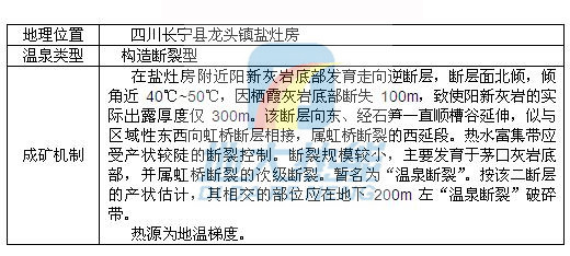 四川長寧竹海溫泉風景竹海溫泉位于四川長寧縣龍頭鎮鹽灶房,因溫泉水水溫達39.5℃,富含微量元素和特殊的氣體組分,可定名為硫化氫礦泉,浴用具有特殊醫療效果,屬發展溫泉旅游業的寶貴資源。1994年7月在溫泉旁的長寧化工廠施工1#及2#供水孔時,意外地在1#孔60m深處揭露熱水,水溫達38.5e,估計流量約2000m3/d。1996年7月在根據熱異常及放射性r異常確定的3#孔位處,于80m深處又鉆遇42℃熱水。